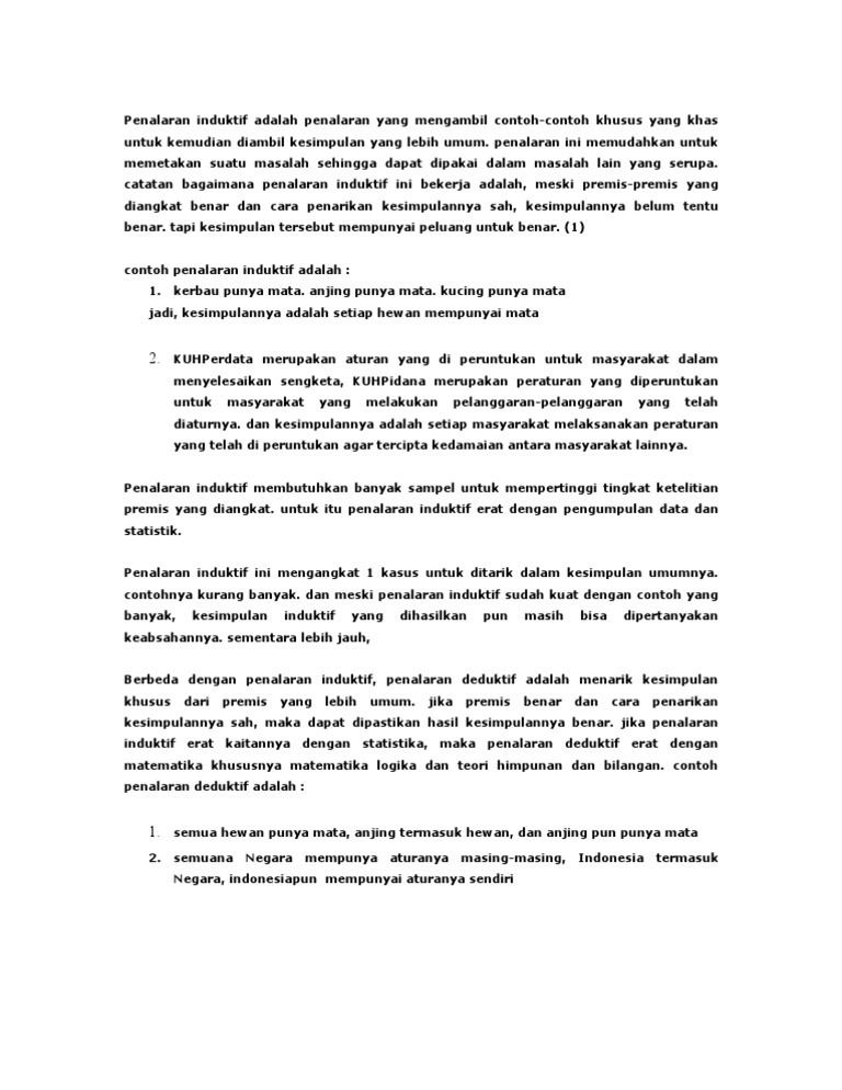Yang Termasuk Penalaran Induktif / Penalaran Induktif Dan Deduktif. Jadi, ikan paus melahirkan anaknya 3. • jika dipanaskan, besi memuai. Metode berpikir pendekatan ilmiah adalah penalaran yang menggabungkan cara berpikir deduktif dengan cara berpikir induktif. Penalaran induktif diperoleh berdasarkan beberapa kasus spesifik yang menghasilkan kesimpulan yang umum. Walaupun kadang kita menemukan kesimpulan yang bernilai benar, konklusi dari penalaran induktif tak pernah terjamin.